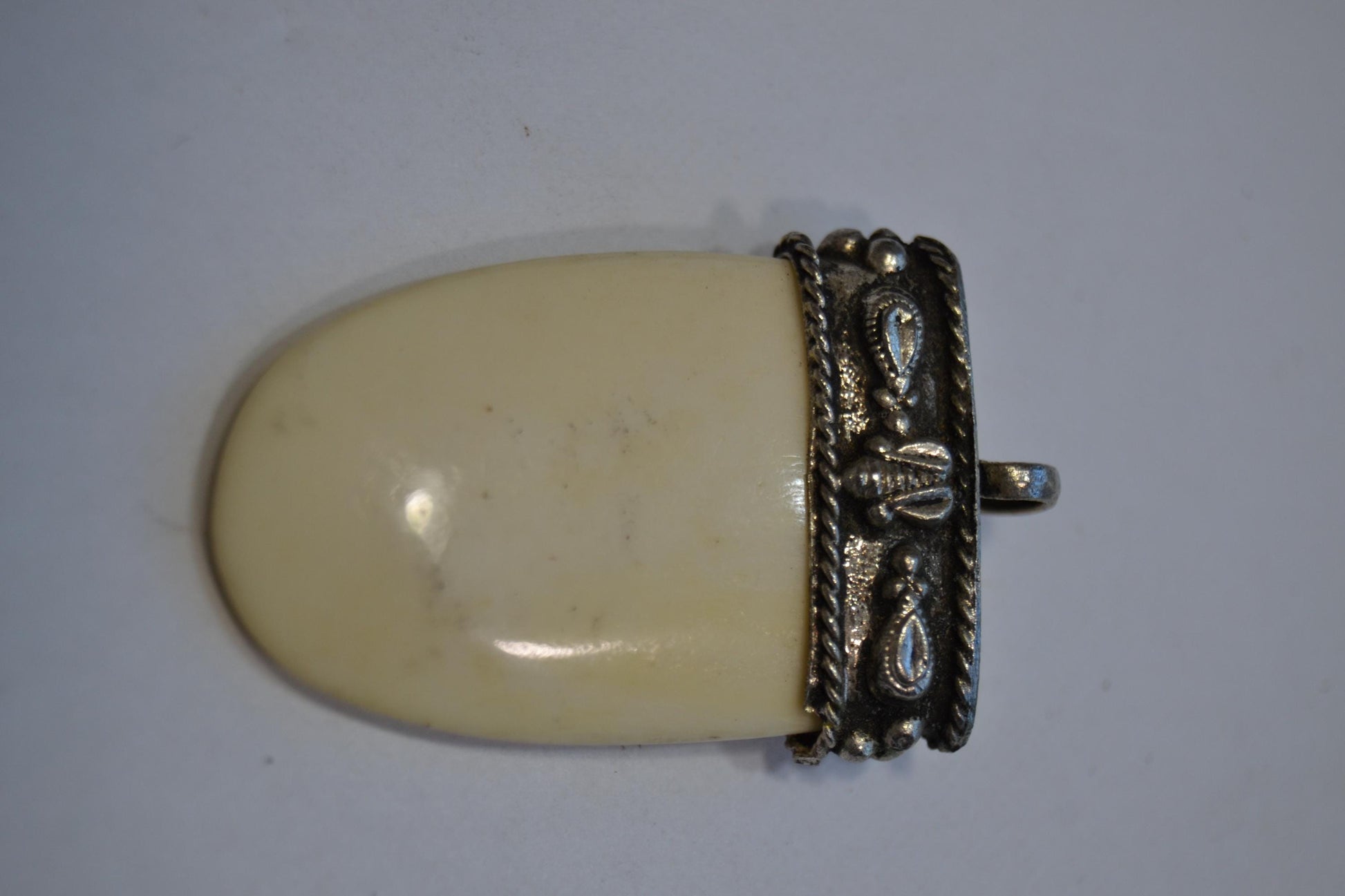 Tooth-shaped hand-carved bone pendants are available in black with white spiral or solid white pattern with sterling silver cap. Dimensions are 25mm x 45mm x 6mm. PRICED INDIVIDUALLY