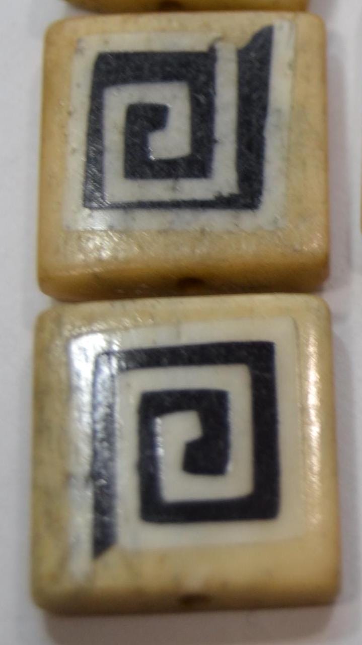 Square bone tile beads are available in two colors: black with white swirl and white with black swirl. Dimensions are 20mm x 20mm x 5mm. PRICED IN PAIRS