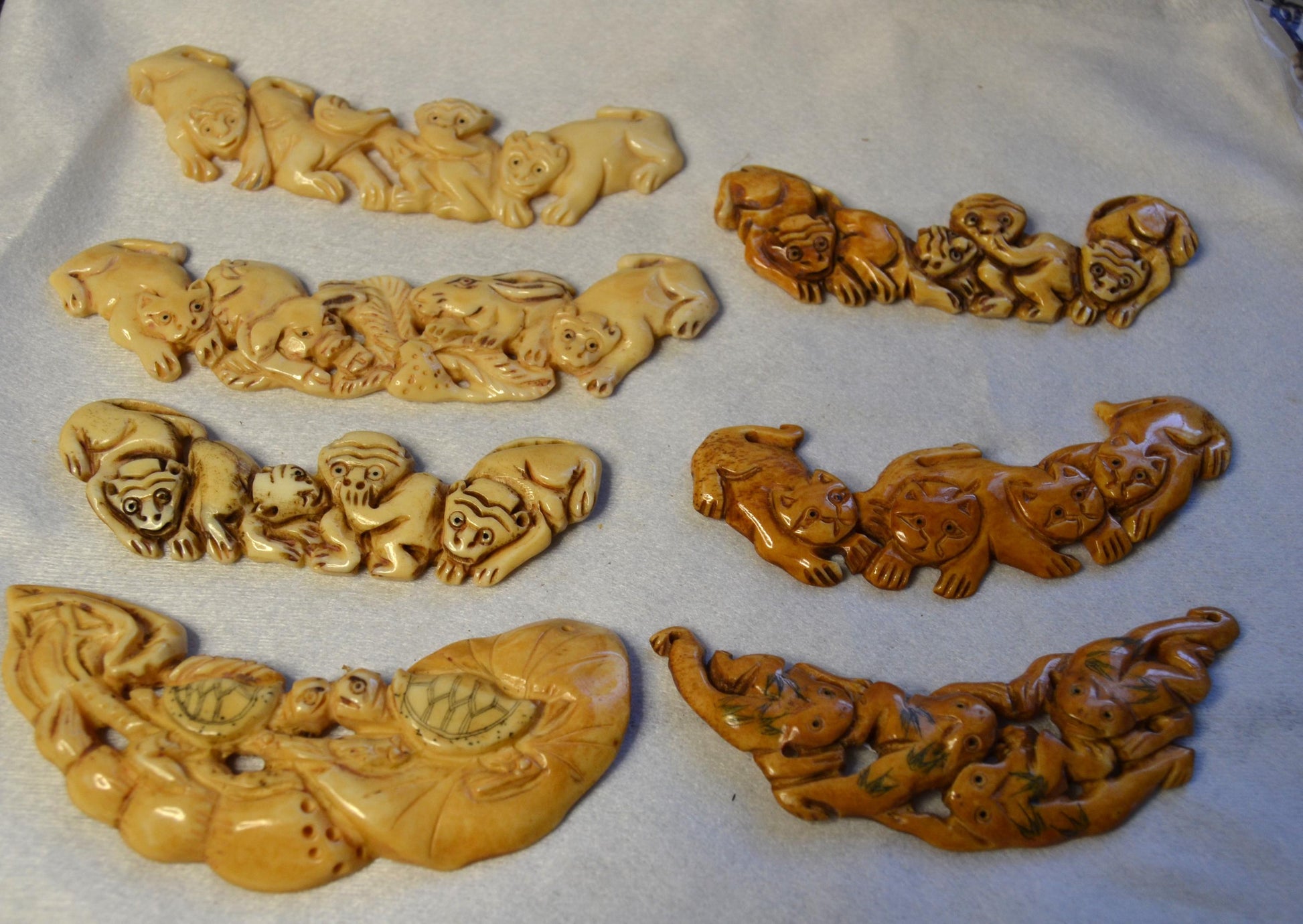 Hand Carved Bone, link pendants