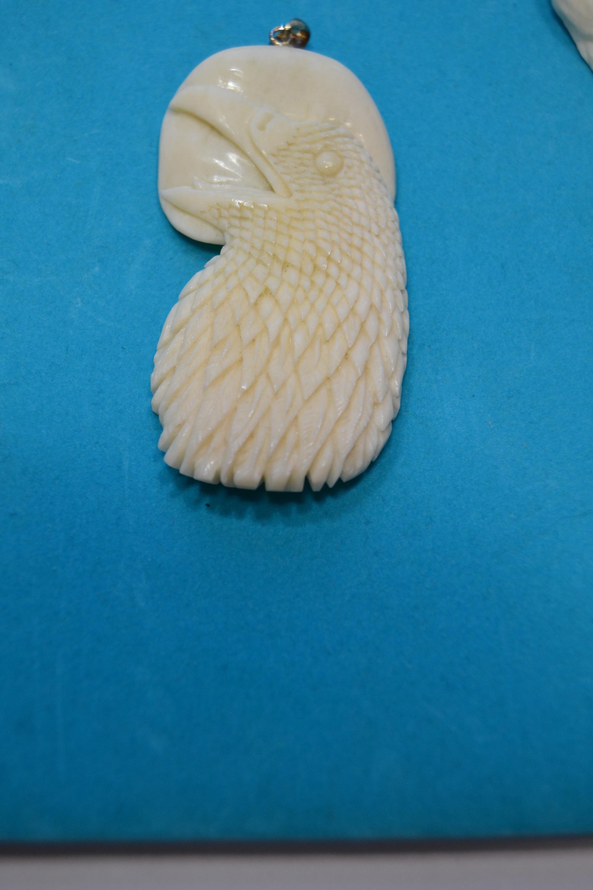 Hand carved bone pendants bears, horse head, eagle w/moon,